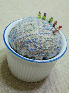 そして水色糸のピンクッション完成。