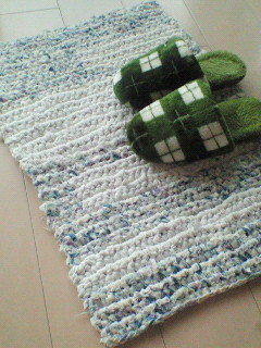 柄はちょっと気に入らないという布を使ってフロアマットを。