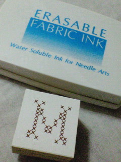 クロスステッチのイニシャルスタンプと水で消せるインクパッドを購入してきて